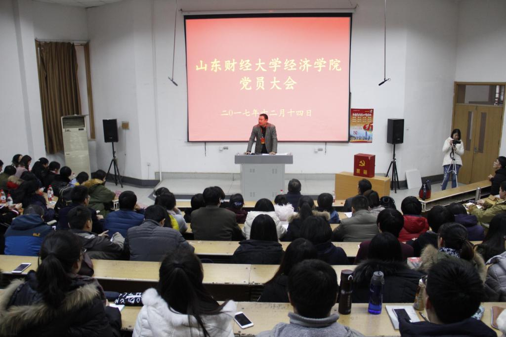 (刘如玉 杨玉琪)12月14日下午14:00,新葡的京集团350vip于舜耕校区第二阶梯教室召开了党员大会,112名教工和学生正式党员参加了会议。大会由新葡的京集团350vip党委书记吴红文主持。