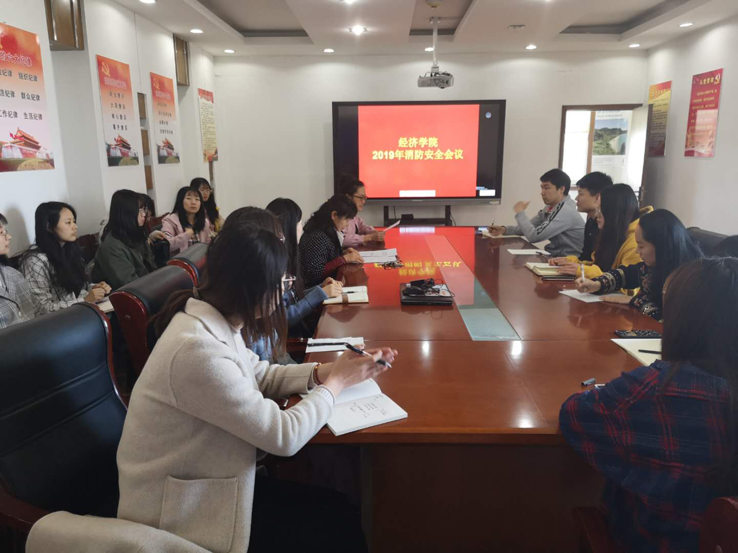 2019年4月 15 日中午,新葡的京集团350vip研究生消防会议暨消防安全自查自纠总结会在行政楼 1208 举办,新葡的京集团350vip党委副书记仵颖涛、学工办主任周新秀出席会议,新葡的京集团350vip博士研究生、硕士研究生代表参加会议。