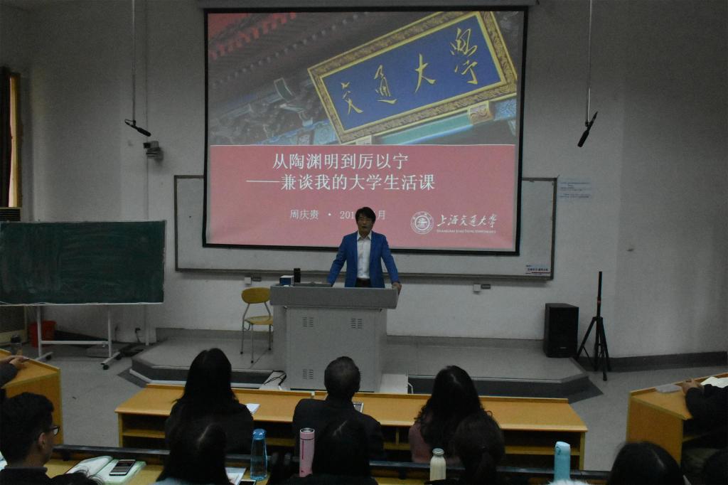 周庆贵同学本科在校期间就是学生中的佼佼者,担任2004级经济学班的班长,同时还担任院学生会主席。2008年以优异的成绩考取上海财经大学硕士研究生并留校任教,担任上海财经大学商学院项目发展中心(PDC)主任。2018年又进入上海交通大学攻读博士学位。周庆贵深情回忆了在母校学习生活的点点滴滴,对老师的培养表示感谢。他结合自己的学习和工作经历畅谈了人生的选择、奋斗和坚持,与现场的师生们分享了成功经验和个人感悟,向同学们传递了走向成功所具备的条件:继续攀登学习高峰、充分发挥个人潜能,努力实现个人价值。他建议同学们拒绝“中等理想”陷阱,拒绝做“精致的利己主义者”,重视职业发展规划,锻造企业家精神,提升个人领导力,建立和谐的人际关系,锻炼写作和表达能力,将写作融入工作,拥有诗意的生活。