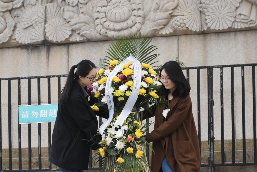 学生代表向革命烈士纪念塔敬献花篮,全体师生面向革命烈士纪念塔庄严宣誓,表达继承革命先烈遗志,发扬革命传统,建设新时代中国特色社会主义的坚定决心和坚强信念。师生瞻仰了革命烈士陵园并献上白花。
