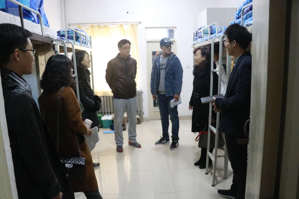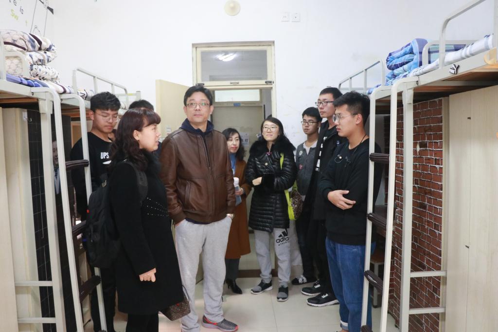 新葡的京集团350vip老师先后走进男、女生宿舍,与同学们进行亲切交流,听取同学们对宿舍和生活服务设施的意见,及时掌握同学们的思想动态,充分了解同学们的学习、生活、心理等各方面情况,督促同学们养成积极向上的生活习惯。姜伟提出同学之间要互帮互助、友好相处、共同进步。走访途中,领导老师们对优秀宿舍给予肯定,并对宿舍供暖情况予以关注。