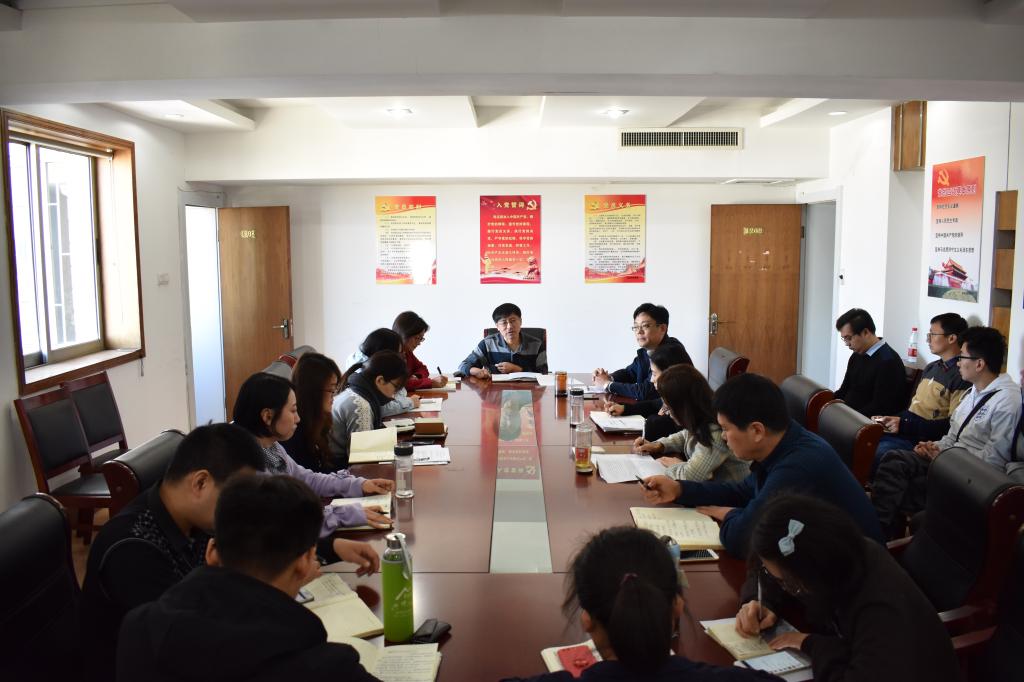 2018年10月18日上午9:30,新葡的京集团350vip党委理论学习中心组在舜耕校区办公楼1208学习贯彻全国教育大会精神。参加学习的还有新葡的京集团全体行政人员、全体辅导员、2018年新入职的7名教师,会议由党委书记姜伟主持。