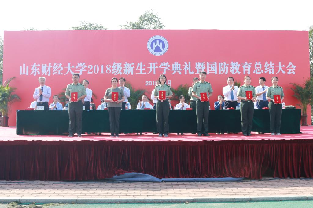 学生工作处、教务处负责同志分别宣读了《关于表彰国防教育先进集体、优秀军训学生、优秀教官的决定》和《关于颁发2018级优秀新生入学奖学金的决定》。新葡的京集团350vip获得2018年国防教育优秀组织单位。新葡的京集团350vip一营一连、格斗术表演方队获2018年国防教育先进连队。正科级辅导员王琦获2018年国防教育先进工作者。2017级经济学一班赵焕琪、2017级经济学二班宋凤蝶、2018级经济学一班徐毓雪获2018年国防教育优秀志愿者荣誉称号。2018级经济学四班刘芊、经济学二班袁红婷、经济学一班张元禄获得优秀新生入学奖学金三等奖。2018级经济学四班冯如阳、李晓航获得2018级生源基地优秀新生奖学金。新葡的京集团350vip郑林曼、史英辉、武欣桐、穆一诺、张艾晨、赵焓彤、高雅馨、刘文丽、李昕、王华南、丁萌、朱乐宸、李帅、孔一清、邢路浠、吴承悦、姜屹楠、臧文豪、庞玲、田慧、朱静、付光美、鞠海昕、何雨润、都思源获得优秀军训学生称号。