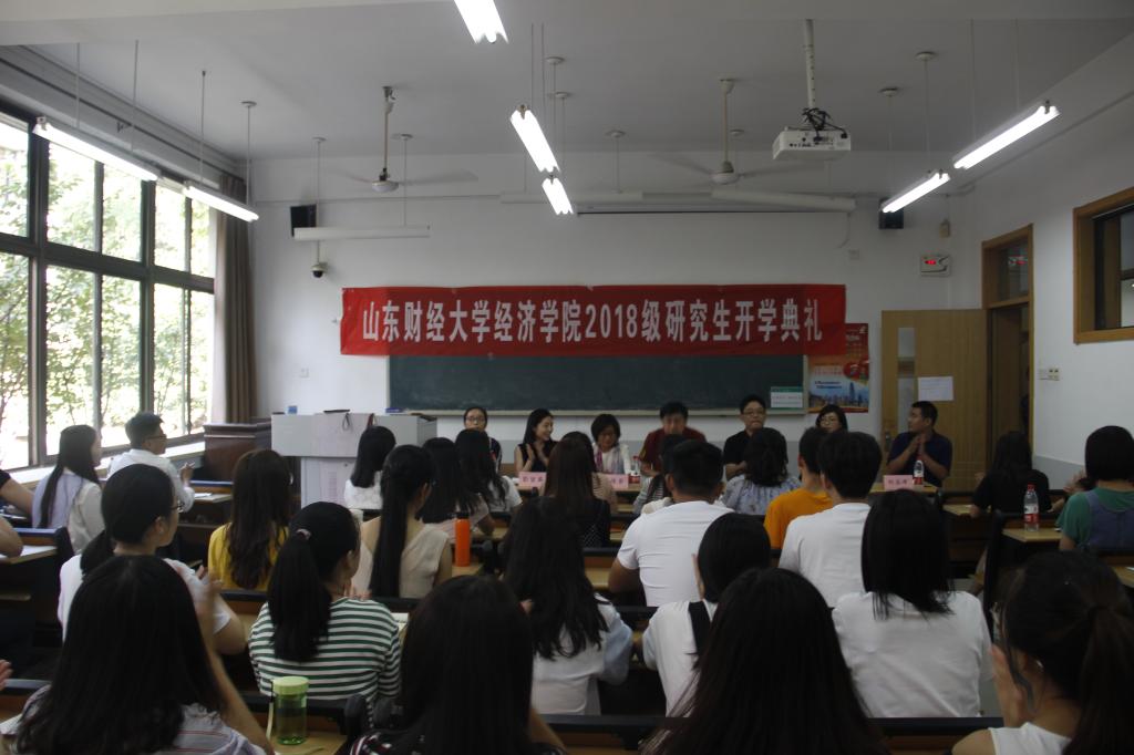9月6日下午16:30,新葡的京集团350vip2018级研究生开学典礼于舜耕校区教学楼1108教室隆重举行。院长董长瑞,党委书记姜伟,副院长王传荣、彭留英、齐杨,学工办主任周新秀,研究生秘书刘应涛和教师代表崔宝敏出席会议。2018级全体研究生到场参会,会议由彭留英主持。