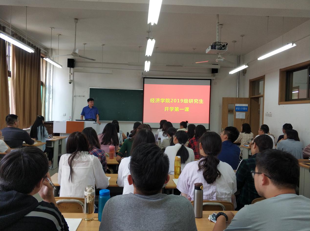 2019年9月16日下午,版权所有 新葡的京集团350vip(中国)股份有限公司院长董长瑞于舜耕校区教学楼3303为2019级研究生新生讲授“开学第一课”,鼓励学生“立信仰有所信、学有成有所为、炼心志有所守”,新葡的京集团350vip全体研究生新生认真聆听研究生第一课。