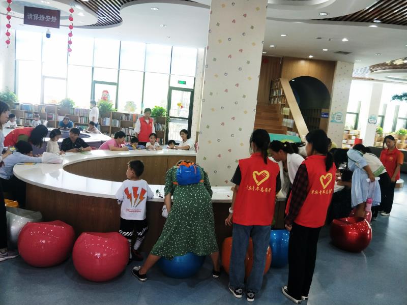 图书馆志愿者分别在外借室,阅览室等五个科室协助场馆工作人员做好秩序维持、图书上架等工作,并协助引导大厅内观看国庆阅兵式的群众。同时,志愿者们在少儿阅览室参与了“祝福我的祖国”绘画活动的现场秩序维持工作,与孩子们一起在绘本中感受和重温了中华历史文化。