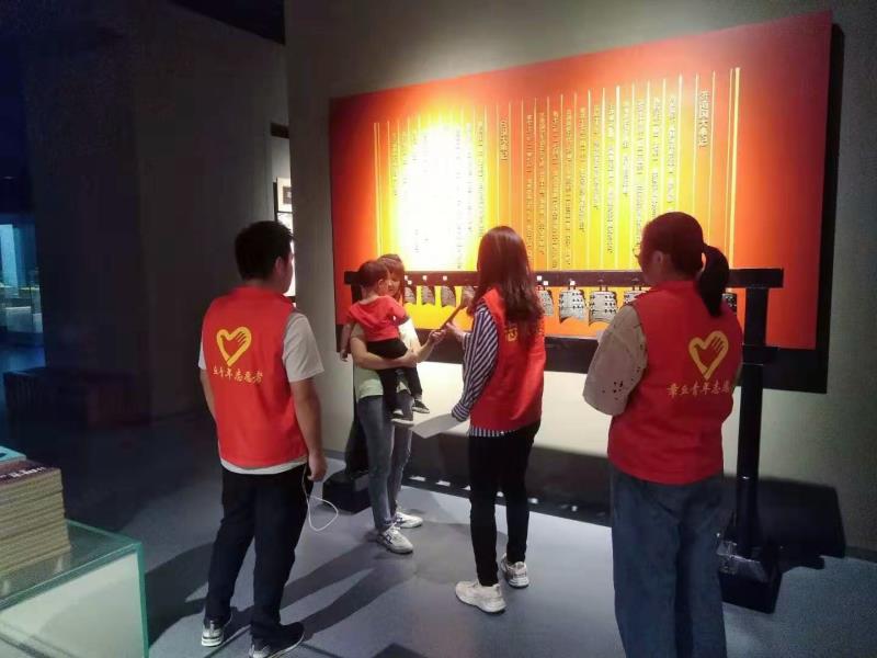 博物馆志愿者通过对博物馆内的藏品了解,学习了主要藏品的解说词,并分别到各文物展厅协助工作人员为入馆参观的游客讲解。在“钟乐之声”编钟敲击体验活动中,志愿者积极学习编钟基本技巧,在帮助游客学习的同时也收获了别样的乐趣。