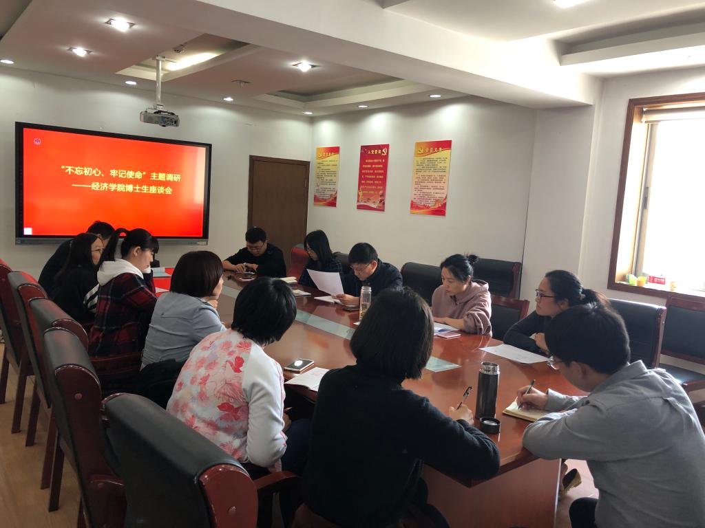 根据 学院“不忘初心、牢记使命”主题教育的工作计划,10月18日下午,学院召开“不忘初心、牢记使命”主题教育——博士研究生座谈会,围绕博士研究生在学习生活、培养教育、科研工作、评优评奖等方面展开座谈,会议由院长董长瑞主持,副院长彭留英、研究生教学秘书刘应涛、辅导员周新秀和全院博士研究生参加。