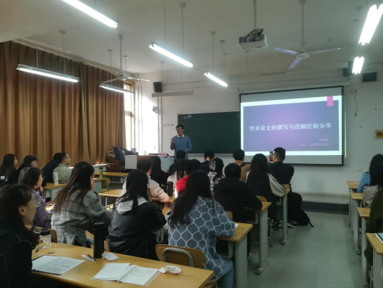 刘建旭老师以“学术论文的撰写与投稿经验分享”为主题展开学术经验分享。关于学术论文的撰写,刘老师以三篇优秀的国内外论文为例,对学术论文各个部分的写作做了细致地方法讲解;关于投稿经验,刘老师通过讲述自己的投稿经历,指出提前熟悉和了解目标期刊对于成功投稿很重要。