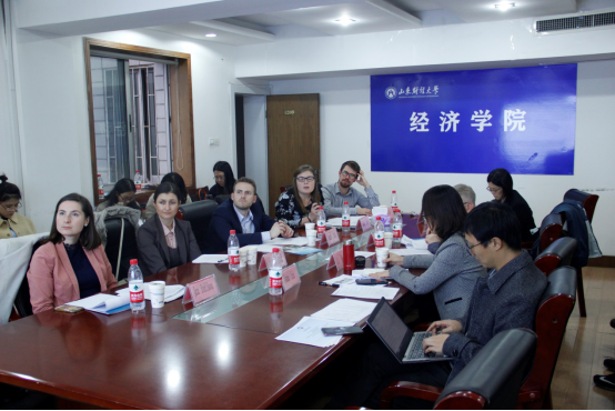 研讨会上,围绕会议主题“Current Trends and Challenges in the World Economy”与会代表分享了各自的研究成果。杨丽教授以“Characteristic Town in China: Policy Choice and Its Effects ”为题,结合自己多年的研究经验及工作经历,向大家介绍了中国特色小镇的特点、发展理念和发展模式。刘建旭老师宣讲了论文“Examining the Interdependence between the Exchange Rates of China and ASEAN Countries: A Canonical Vine Copula Approach ”,基于经济学的理论依据,结合实证分析揭示了中国与东南亚国家汇率的相互影响。捷克布拉格经济大学Mr.Dominik Proch以“The Role of State in Shaping Investment Environment: Case of India”为题分析了印度的投资环境和未来投资的产业发展等问题。来自两校的与会学生也在论坛上宣读了各自的论文。在讨论环节,与会代表就论坛主题和宣读论文展开热烈讨论,从不同学科角度提出很多独到见解。