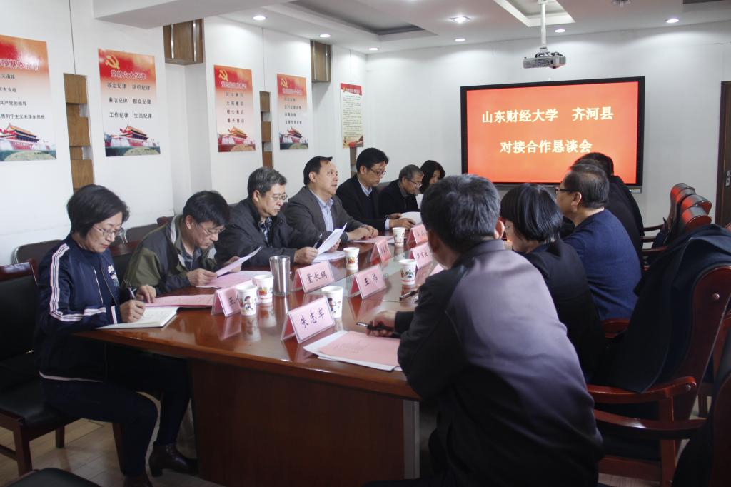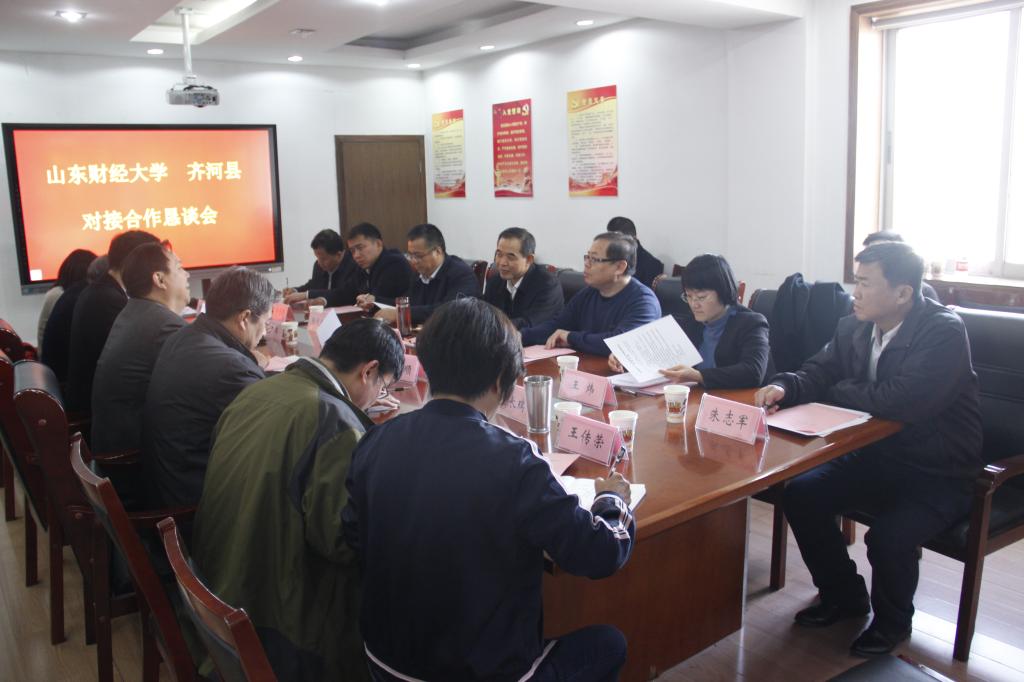 2019年11月18日,新葡的京集团350vip与齐河县合作对接交流会在舜耕校区办公楼1208顺利举行。齐河县委副书记董庆新、齐河祝阿镇省派乡村振兴服务队队长韩京安一行7人,新葡的京集团350vip党委副书记车滨、机关党委书记李孟顺、新葡的京集团350vip党委书记姜伟、院长董长瑞教授和乡村振兴研究院负责人等8人参与本次会议,会议由姜伟主持。