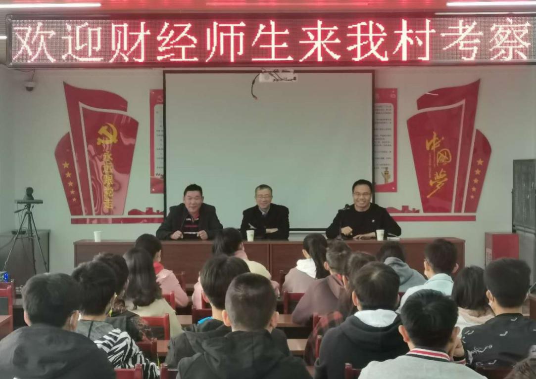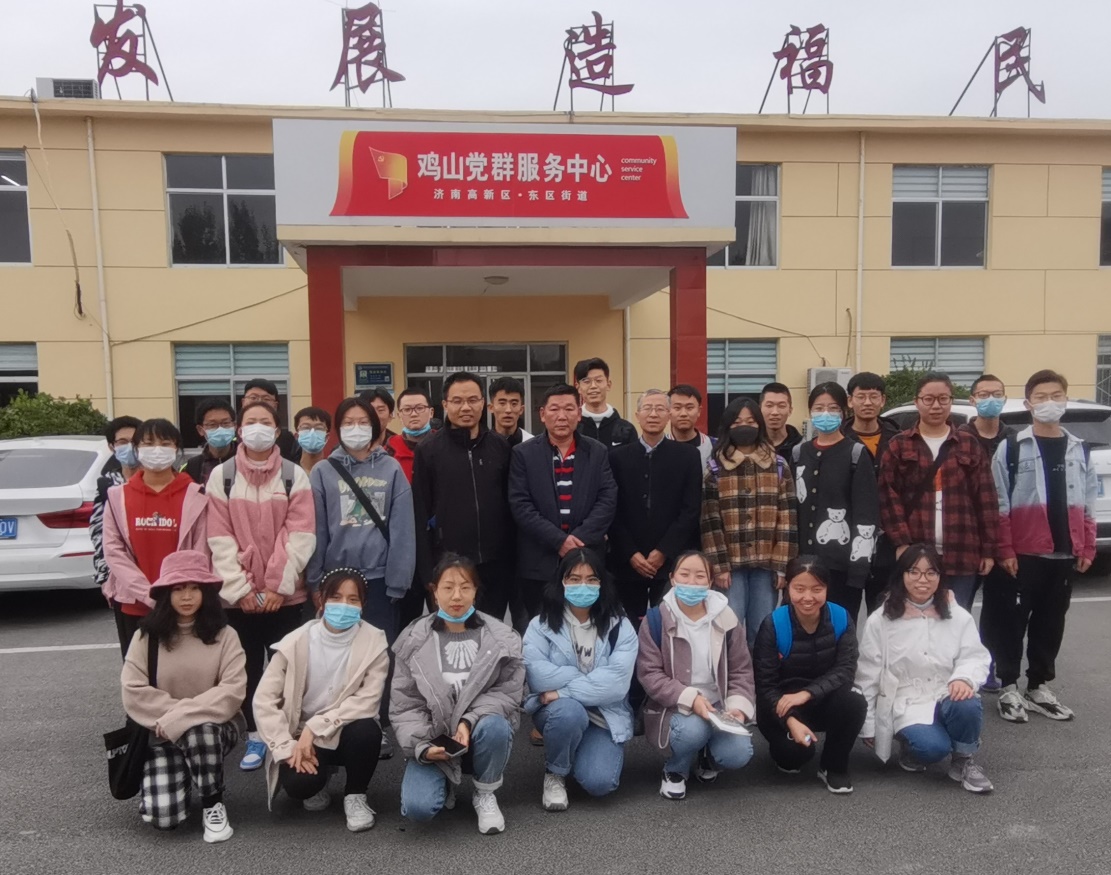 11月5日下午,2018、2019和2020级乡村振兴创新实验班同学在院党委副书记高峰,农经系主任齐永华带领下,赴济南市高新区东区街道鸡山村开展实习调研活动。鸡山村党支部李军书记和刘巨山副书记热情接待了大家。刘书记就鸡山村的历史沿革、村情村貌、产业经济、文化教育等方面做了全面介绍,互动环节,同学们踊跃提问,双方就农户收入、征地拆迁、补偿安置、养老保障、医疗卫生、脱贫攻坚、村庄规划、古建筑保护等问题进行了深入、广泛的交流。