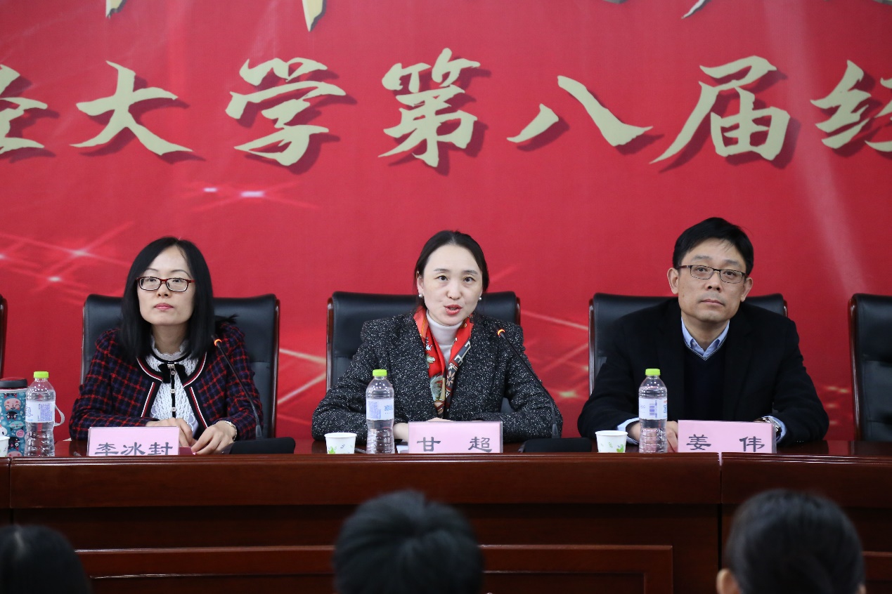 甘超强调经济学术文化节是根据财大共青团“一院一品”校园文化格局,构建精品校园文化体系的总体部署而精心打造的,是一项有底蕴、活力强、效果好,深受同学们喜爱的品牌活动,希望同学们在关注社会经济现象、探究经济学科前沿热点问题同时,重温党的光辉历程,感悟党的伟大成就,坚定听党话、跟党走的政治信念,激励自己,以奋发向上的精神状态,追逐梦想,奋斗前行。
