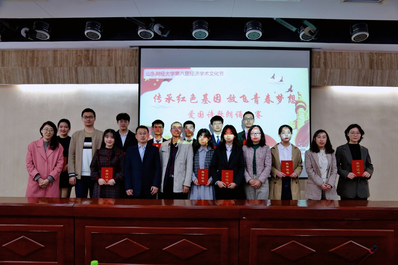 (通讯员: 王嘉琪 刘毓菲)为庆祝中国共产党建党100周年,激励学生继承和发扬党的光荣传统和优良作风。4月1日下午,校学生工作部、校团委、新葡的京集团350vip于圣井校区敏行楼联合举办新葡的京集团350vip第八届经济学术文化节之“传承红色基因,放飞青春梦想”爱国诗歌朗诵大赛。校党委宣传部副部长刘宝璋、校团委孙炯明老师、新葡的京集团350vip党委副书记高峰、李冰封担任评委,新葡的京集团350vip学工办主任裴斐、院团委书记付雯、院党委专职组织员王琦出席比赛,新葡的京集团350vip2019、2020级部分同学到场观看。
