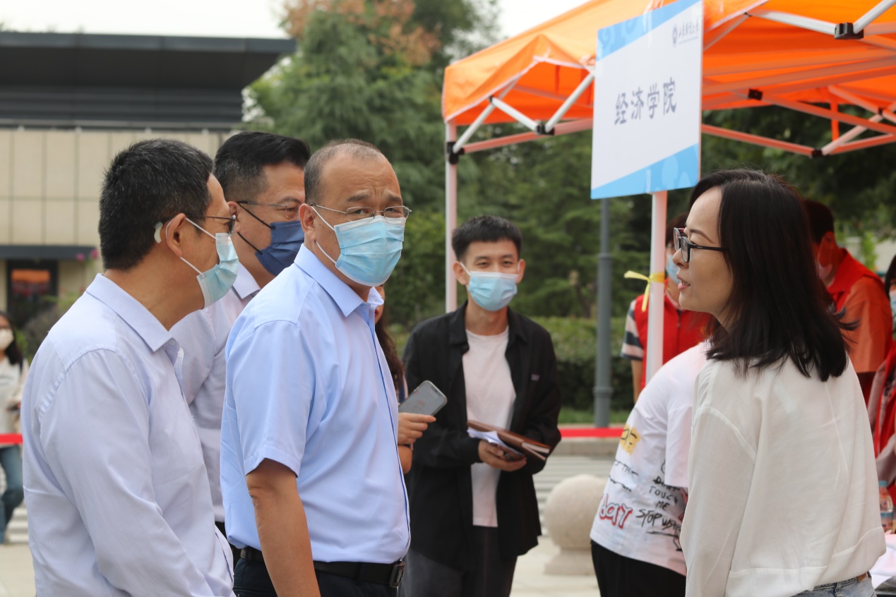 校党委副书记张培国在校党委学生工作部部长、学生处处长杨哲,保卫处处长徐明春的陪同下莅临新葡的京集团迎新现场,了解新葡的京集团350vip新生报到情况,对新葡的京集团350vip迎新工作人员的精神风貌、工作态度给予高度肯定,同时对疫情防控、报到流程、服务态度等提出指导性意见。