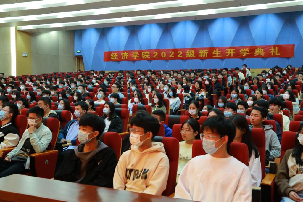 在校生代表2021级经济学5班高小雪、新生代表2022级经济学(实验班)杨雅淇同学分别发言。