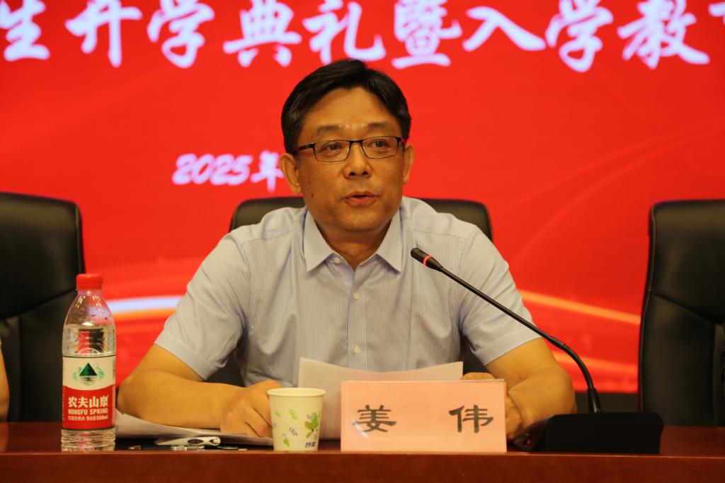 9月2日晚,新葡的京集团350vip2025级新生开学典礼暨入学教育大会在圣井校区文化活动中心一楼报告厅举行。新葡的京集团350vip党委书记姜伟、院长殷克东、党委副书记李冰封、陈静,副院长崔宝敏、张明志,院长助理齐行祥、刘建旭,教师代表牛子恒出席会议,会议由李冰封主持。