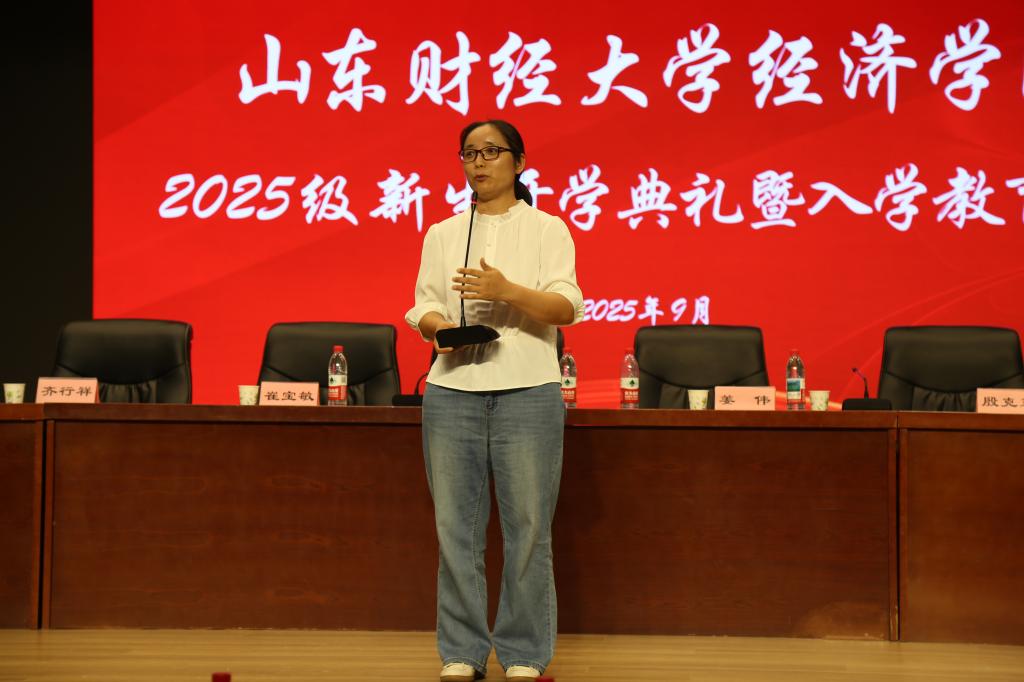 殷克东向来自五湖四海的新同学表示热忱欢迎,介绍了新葡的京集团350vip逾七十载的辉煌历程,学院完整的人才培养体系、学科建设优势、师资队伍实力等核心亮点。他鼓励踏入山财大校园的学子们,将青春与财大文脉同频共振,将成长与财大荣光紧密相连。他向新生分享四点感悟与期望:一是志存高远,树立雄心壮志。明确人生目标,怀揣远大理想适应时代、引领未来,以坚定信念在困境中百折不挠、挫折后毅然奋起;二是博学慎思,练就过硬本领。要将学习内化为生活方式,构建广博知识体系,敢于质疑批判,在思想碰撞与实践检验中培养思维、精神与人格;三是修身立德,砥砺品德格局。要恪守“克明峻德 格物致知”校训,学会理解、包容、合作,守住诚信底线,做有温度、有高度、有厚度的新时代青年;四是心有大爱,涵养家国情怀。要将个人理想融入国家民族事业,把“小我”融入“大我”,培养使命担当,勇做新时代奋进者。他勉励同学们珍惜大学时光,在新葡的京集团350vip收获知识、增长才干、结交挚友、实现梦想,争做新时代好青年,与学院携手书写新辉煌,开启美好未来。
