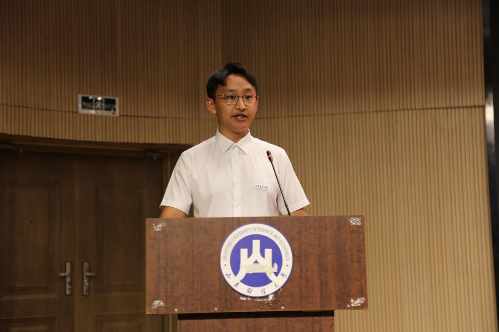姜伟向来自全国各地的新同学致以诚挚祝贺,介绍了学院以学生为中心、以学风为指引的教学理念,聚焦提升学生综合素质、促进全面成才的工作思路与创新实践,展示学院在学术、竞赛、实践等领域的突出成果。他鼓励新生们要以知识为前行的风帆,锻炼创新实践能力,为未来奠定坚实基础,并向新生提出三点殷切期望:一是要胸怀梦想,志存高远。要以梦想作为指引前行的灯塔,以高远的志向作为不断前进的动力,让青春的梦想与时代的步伐同频共振;二是锤炼本领,追求卓越。要在锤炼本领的道路上越障排险、逢山开路,以追求卓越的气魄与勇攀高峰的斗志迎接挑战,让勤奋学习成为青春远航的动力;三是涵养厚德,担当大任。要以财大精神为根脉,潜心涵养品德修为,主动扛起时代赋予的重任,做到与民族发展同呼吸,与时代脉搏同步伐。他勉励同学们涵养品格、德才并重,在时代大任的浪潮中,争做有理想、敢担当、能吃苦、肯奋斗的新时代好青年,挥洒青春,圆梦财大,共同书写新时代的光辉篇章。