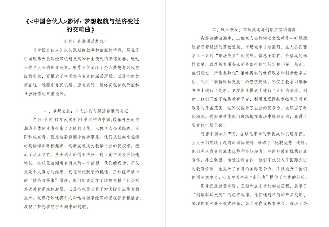 此次大赛面向新葡的京集团350vip全体全日制在校生收集作品,历时一个多月,分为宣传动员、征集作品、评奖评优、获奖作品展示四个阶段,得到全校同学的积极响应。参赛同学围绕“叙说经济电影,浓缩时代变迁”主题展开,深入挖掘电影作品中所涉及的经济现象、经济发展规律等经济主题内容,并结合社会环境、时代背景等,揭示经济变化对时代和社会的深刻影响。