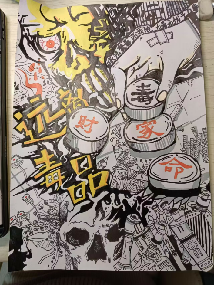 新葡的京集团面向全体学生开展的禁毒作品征集活动得到同学们的积极响应,共收集手抄报类作品28幅,包括手抄报、海报和书法等多种形式;征文类作品49篇,包括诗歌、散文、议论文等多种文体。同学们以“健康人生、绿色无毒”为主题,或以画笔、或以文字,将毒品之于个人、社会和国家的危害展现得淋漓尽致,不仅体现出艺术造诣和文学素养,更表露出对健康绿色的无毒人生发自内心的呼唤和渴望。