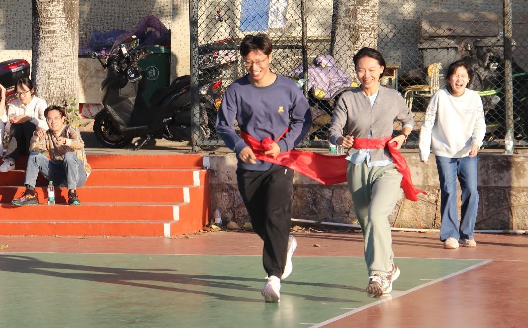 本次趣味运动会共设置两人三足、一圈到底、真假抛球、达芬奇密码、腰缠万贯和正话反说六个游戏项目。运动场上,大家激情飞扬,奋力拼搏,团结协作,欢呼声加油声此起彼伏,整个赛场既紧张激烈,又充满欢声笑语。全体师生欢聚一堂,同台竞技,尽展奇思巧智,共同享受运动的快乐。“破冰游戏”成功激发了大家的团队精神和竞争意识,拉近了彼此之间的距离;“两人三足”项目中,同学们默契配合、争分夺秒,共同迈向终点;“一圈到底”环节,参赛者们灵活敏捷,动作节奏把握精准,落后的团队能迅速调整心态和竞技状态,淋漓尽致地体现创新思维和团队协作能力;“达芬奇密码”、“腰缠万贯”和“正话反说”项目则更是智力与速度的较量,动作的敏捷性、超强的记忆力、信息传递准确性以及运气缺一不可,各小组展示了不同竞技战术,比赛精彩纷呈,高潮迭起。