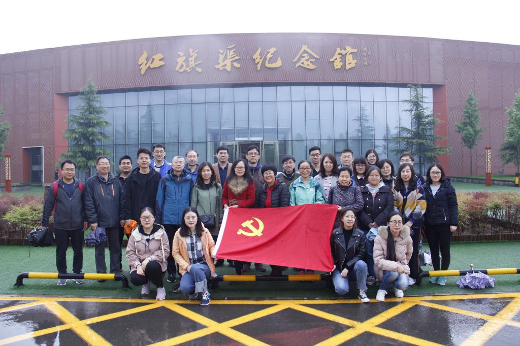 党员同志们首先来到了红旗渠纪念馆,在讲解员的带领下,进行了现场教学。上世纪60年代,十万林县人民在杨贵书记的带领下以“劈开太行山,漳河穿山来,林县人民多壮志,誓把河山重安排”的气魄,绝壁穿凿、挖渠千里,修成了蜿蜒1500公里的红旗渠,彻底解决了林县人民吃水难的问题,把中华民族的一面精神之旗永远插在了太行之巅。一幅幅珍贵的照片,一个个简陋的工具,一段段真实的音像,无不在诉说着当时林县人民“重新安排林县河山” 的悲壮和决心,使党员同志们深刻感受到了共产党人的使命担当和劳动人民的智慧力量。现场教学结束后,全体人员重走红旗渠,经过空中“红飘带”,重走创业路,直达青年洞。在青年洞前,师生党员面对鲜红的党旗,重温入党誓词,使同志们信念更加坚定,境界更加提升。