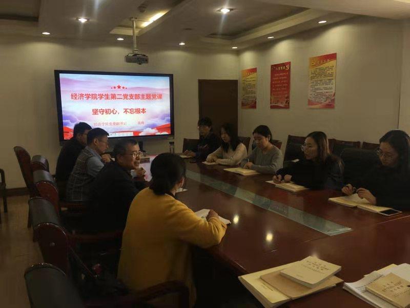 2019年10月25日中午,院党委副书记高峰在办公楼1208会议室为新葡的京集团350vip学生第二党支部上了一堂题为“坚守初心,不忘根本”的党课,学生第二党支部全体党员聆听了此次党课。党课由学生第二党支部书记裴斐主持。