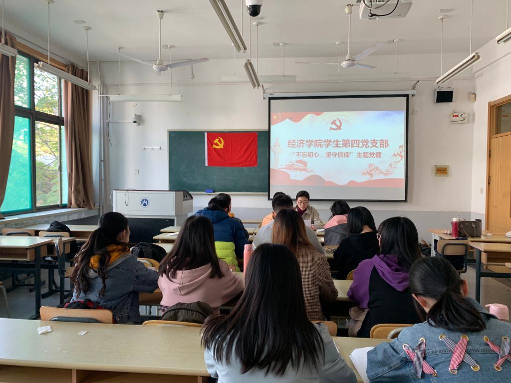 (通讯员 李春雨)10月30日下午,新葡的京集团350vip副院长齐杨以“不忘初心、坚守信仰”为主题,在舜耕校区1310教室为学生第四党支部讲专题党课。学生第四党支部书记王琦主持党课。