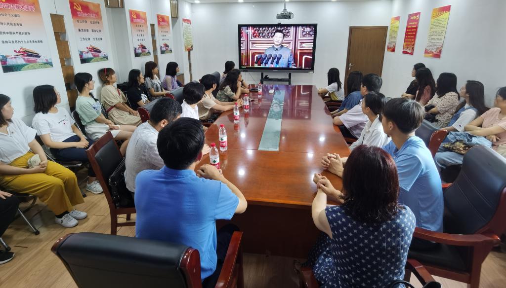 习近平总书记在庆祝中国共产党成立一百周年大会上的重要讲话回顾了中国共产党百年奋斗的光辉历程,展望中华民族伟大复兴的光明前景,在师生党员中引发强烈反响。大家一致认为,要弘扬伟大的建党精神,坚持真理、坚守理想,践行初心、担当使命,不怕牺牲、英勇斗争,对党忠诚、不负人民,传承中国共产党人的精神谱系;要紧密团结在以习近平同志为核心的党中央周围,践行宗旨,拼搏奉献,锤炼政治品格,赓续红色血脉,夯实价值坐标,当好合格党员,永远把伟大建党精神继承下去、发扬光大,为中华民族伟大复兴贡献力量。